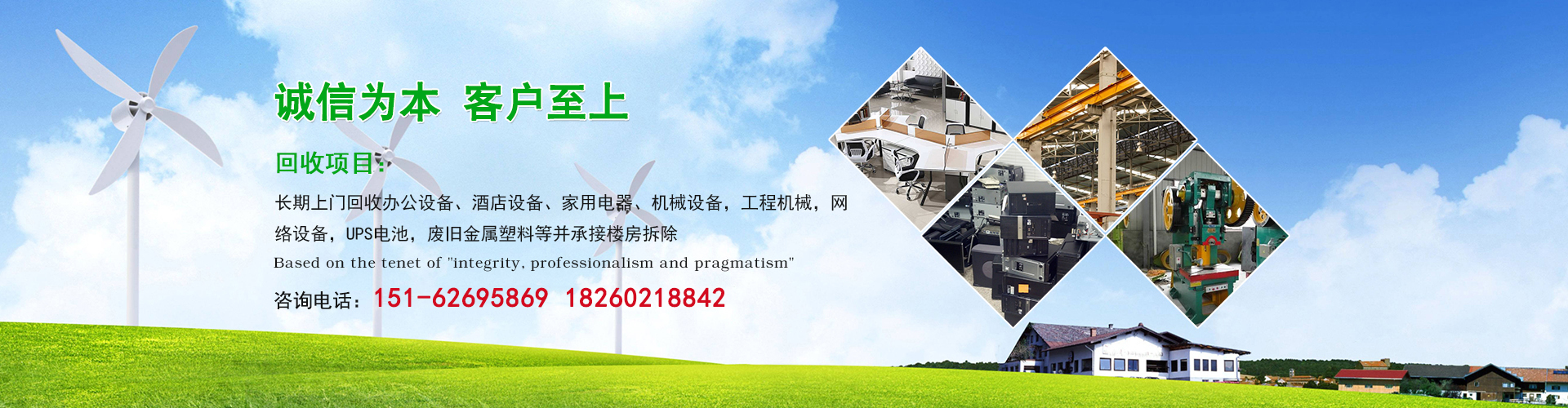 只要你一個(gè)電話(huà)我們將竭誠(chéng)服務(wù)于,上海市各企事業(yè)單位、醫(yī)院、學(xué)校、賓館、寫(xiě)字樓、科研機(jī)構(gòu)及小區(qū)等.長(zhǎng)期上門(mén)回收辦公設(shè)備、酒店設(shè)備、家用電器、機(jī)械設(shè)備,工程機(jī)械,網(wǎng)絡(luò)設(shè)備,UPS電池,廢舊金屬塑料等并承接樓房拆除、酒店搬遷、遷移等工程.本著〝誠(chéng)信、專(zhuān)業(yè)、務(wù)實(shí)”的宗旨,經(jīng)過(guò)員工的多年努力,目前業(yè)務(wù)已擴(kuò)展到上海周邊地區(qū).打造物資回收一直是我們不懈的追求,竭誠(chéng)歡迎與各界朋友進(jìn)行廣泛的各種形式的合作。為各企事業(yè)單位提供快速、周到的服務(wù)、同時(shí)可以簽定長(zhǎng)期回收協(xié)議。 歡迎新老客戶(hù),來(lái)電咨詢(xún),節(jié)假日不休息,信譽(yù)保證。