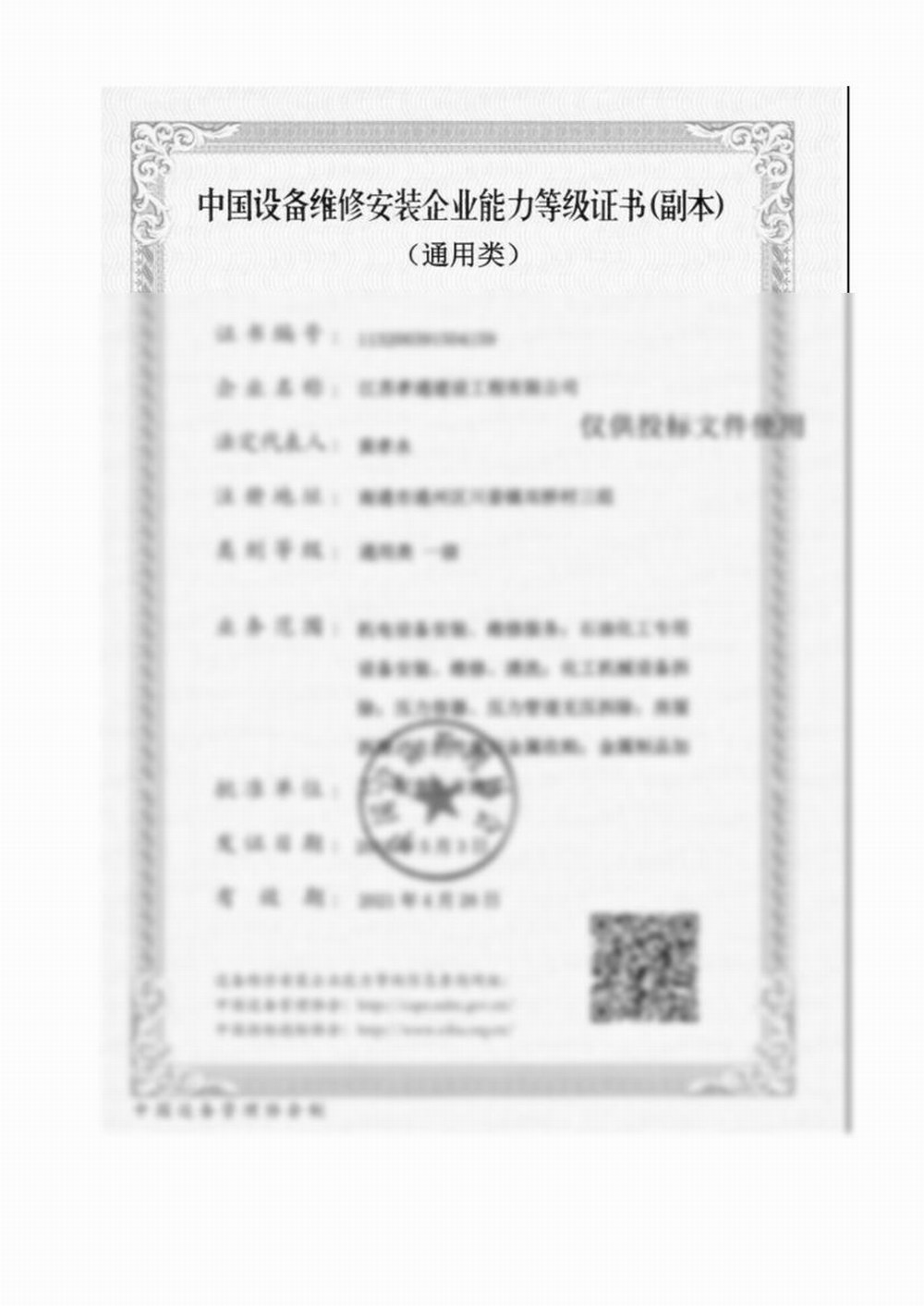 中國(guó)設(shè)備維修安裝企業(yè)能力等級(jí)證書(shū)(副本)